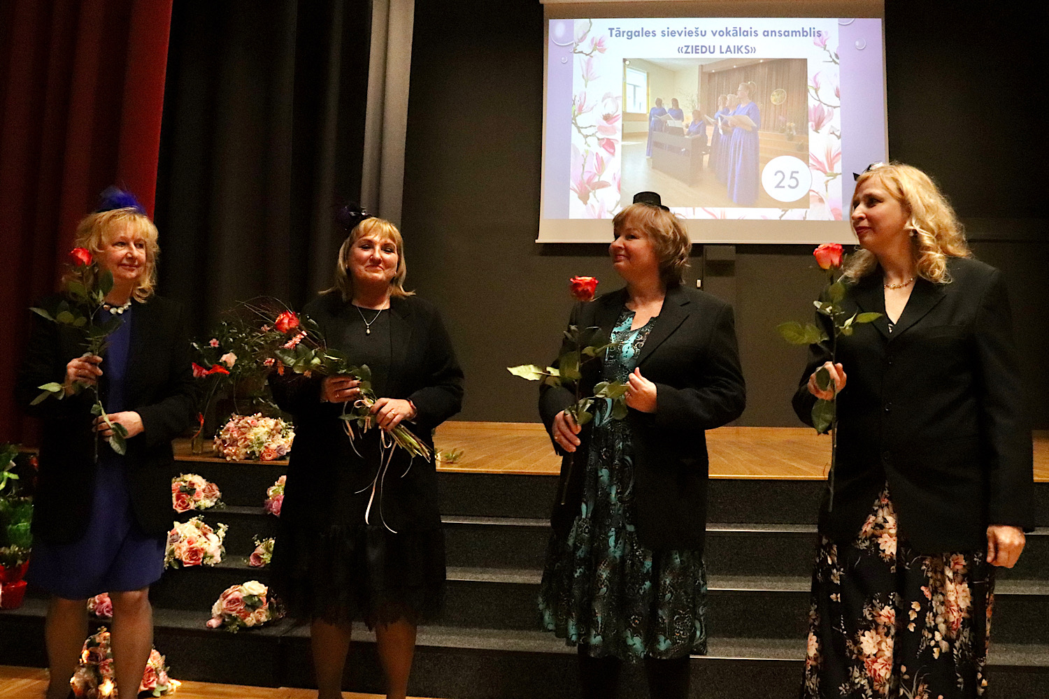 Tārgales pamatskolā sirsnīgi, sagaidot tuvus un tālākus viesus, 25. dzimšanas dienu sagaidīja Tārgales pagasta sieviešu vokālā ansambļa “Ziedu laiks” dziedātājas un viņu vadītāja Margita Kronberga.