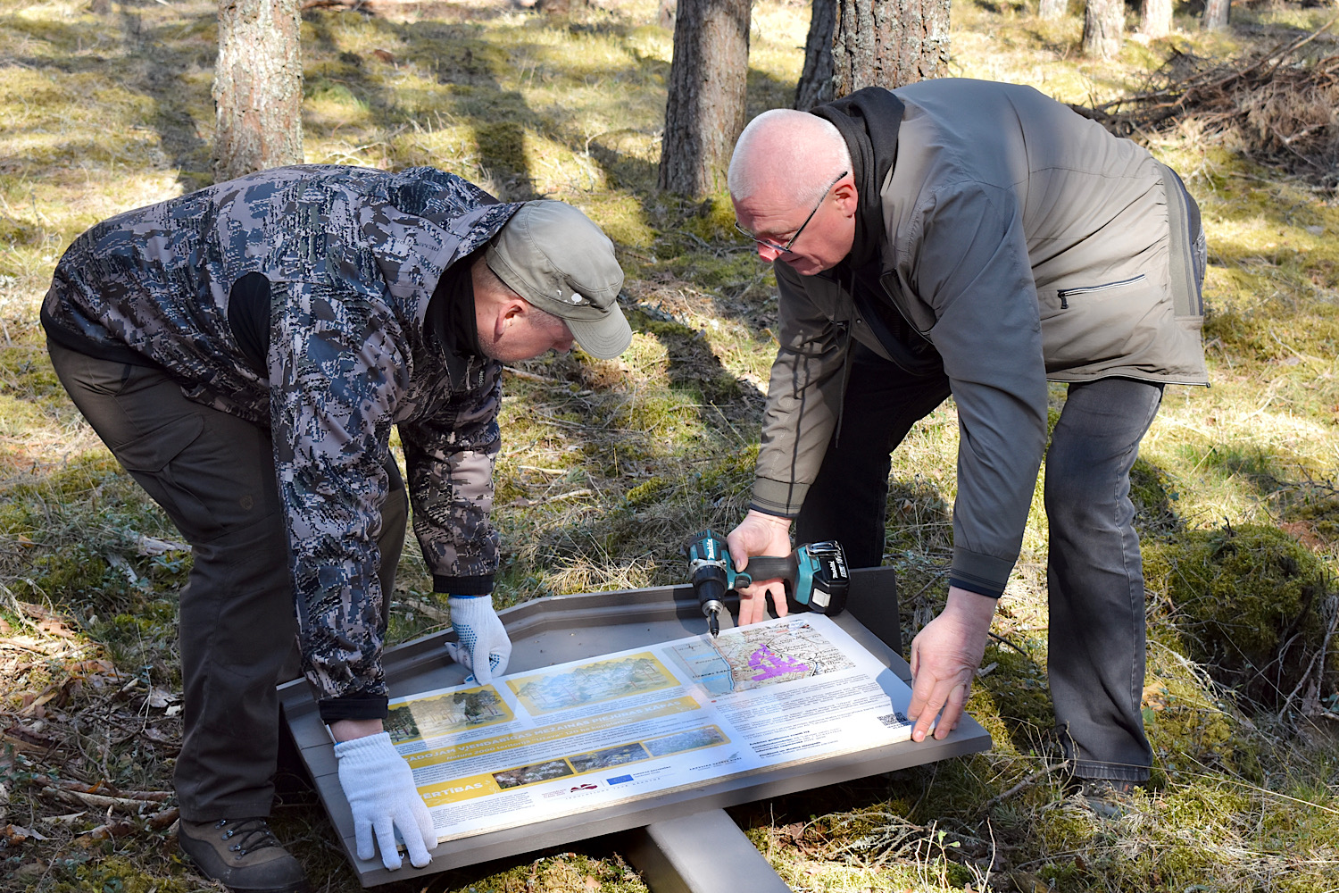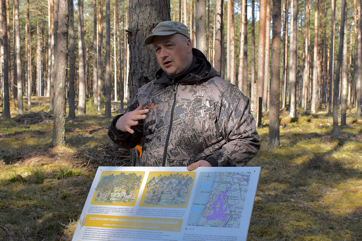 Plāksnes uzstādīšana mežā