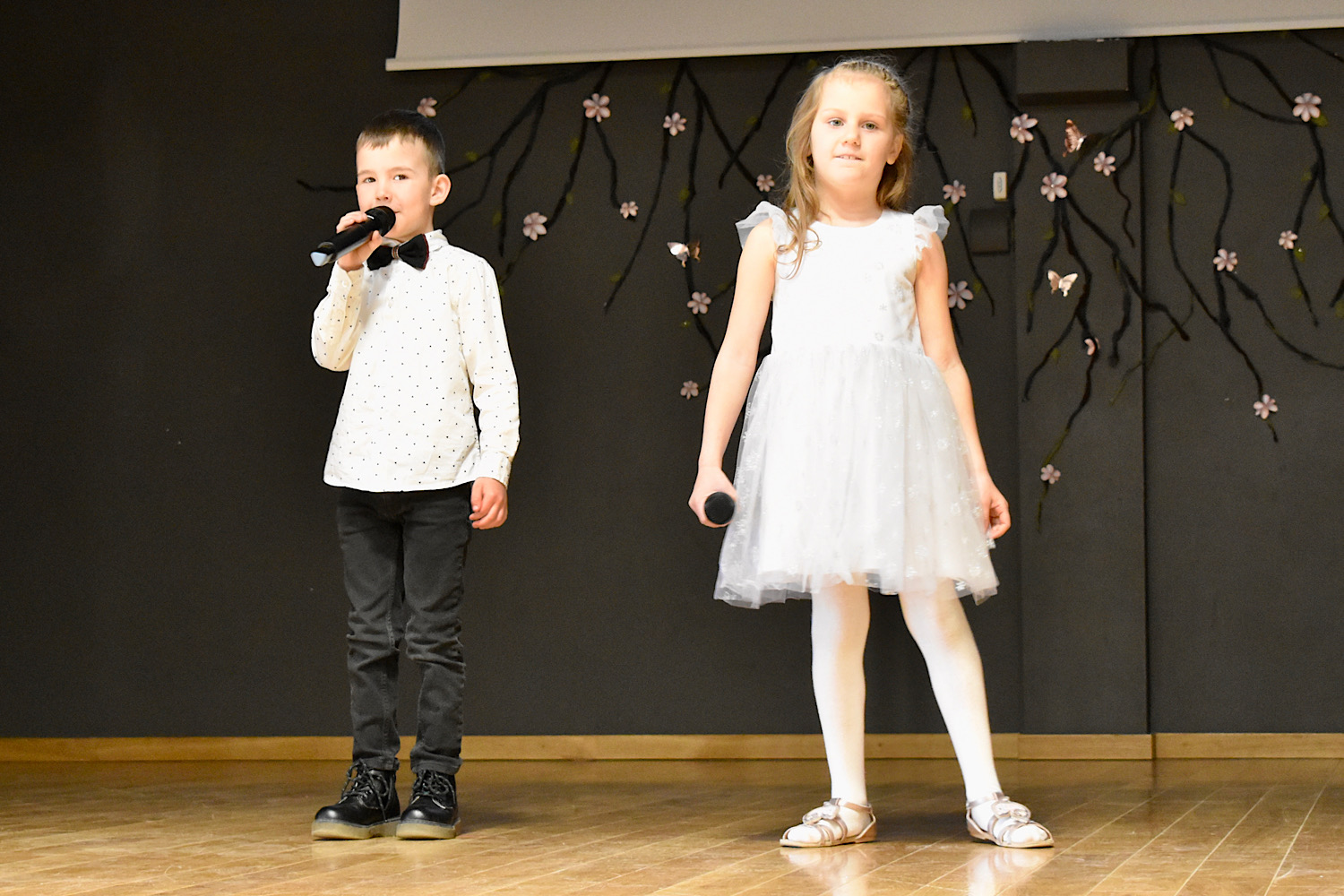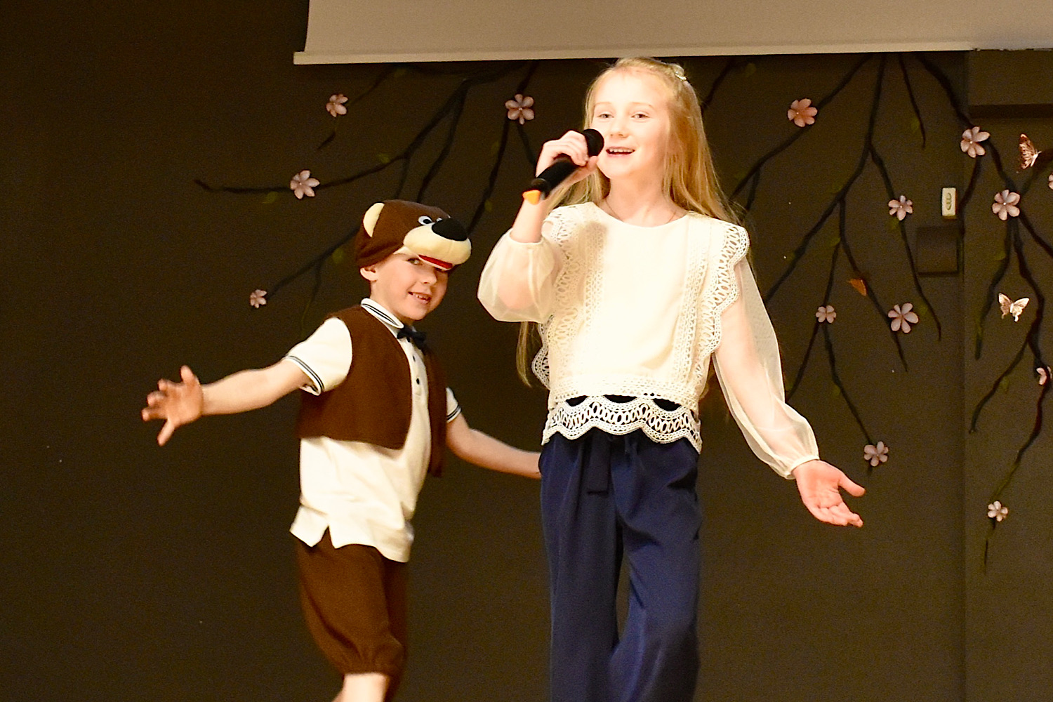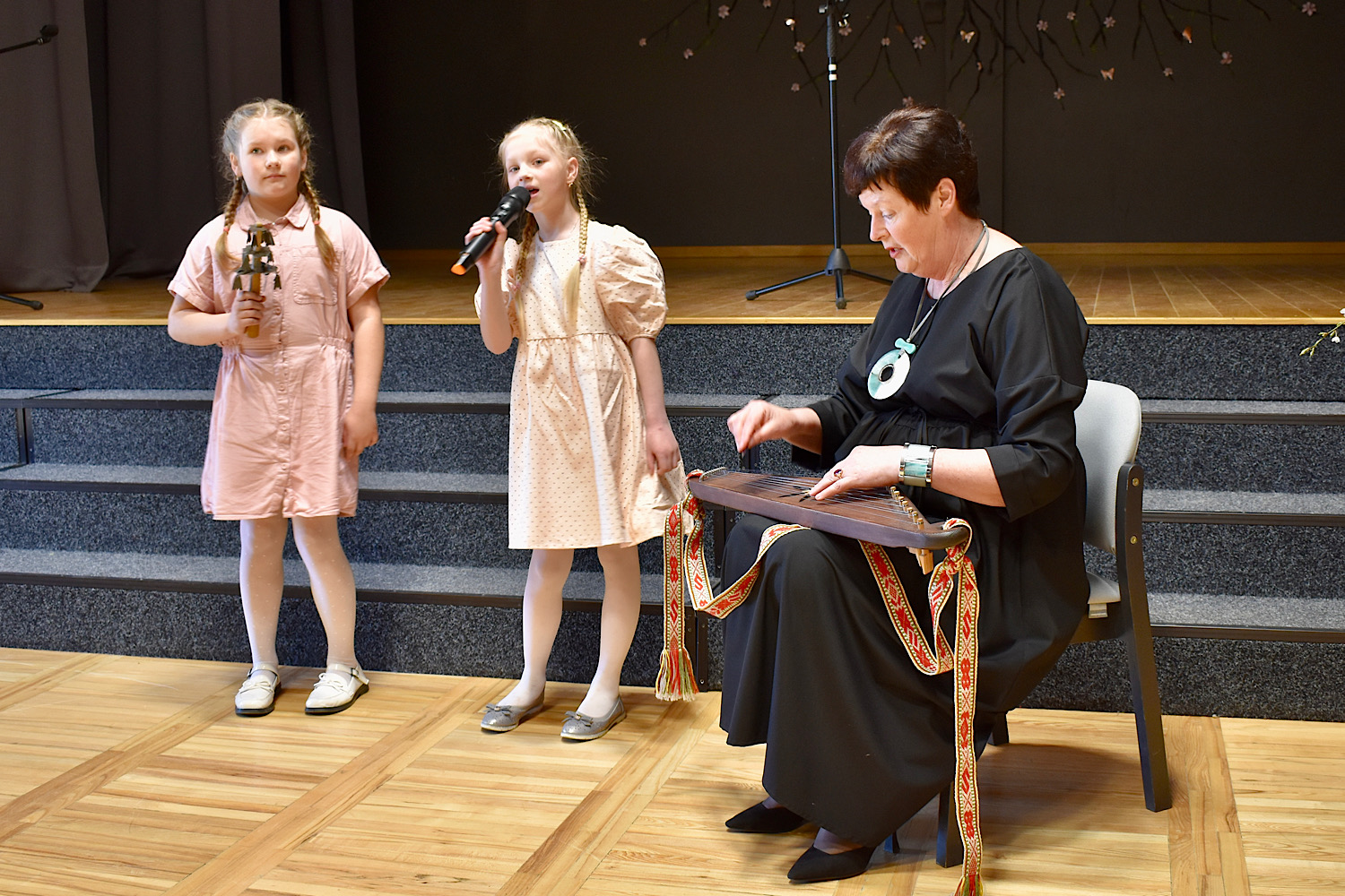 Dzied duets un skolotāja spēlē pavadījumu