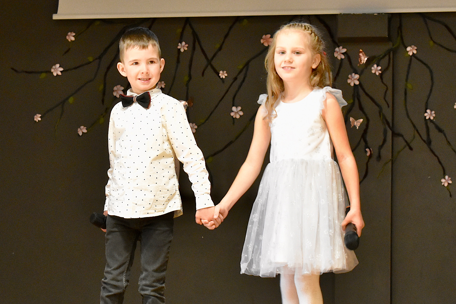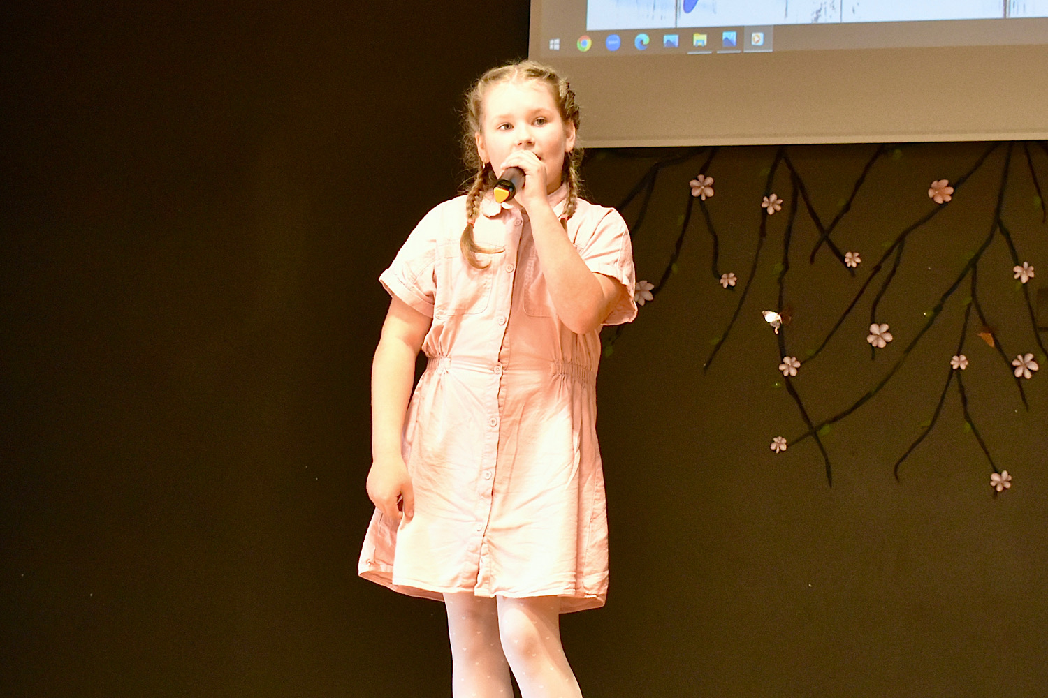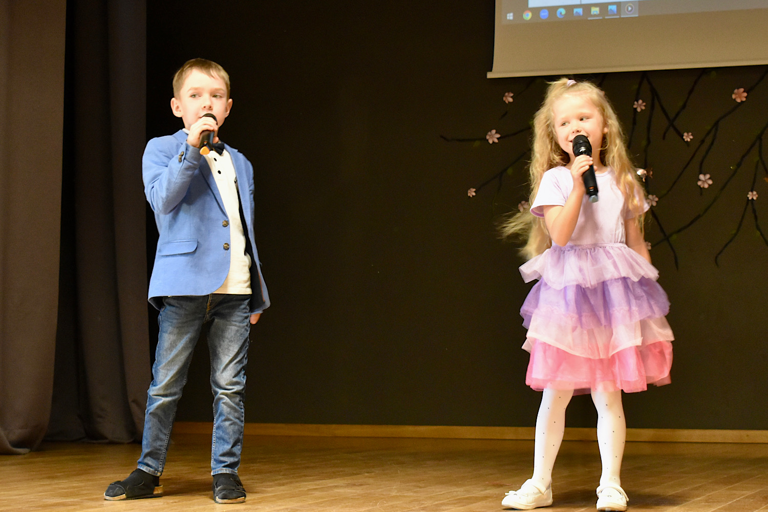 Dzied duets un skolotāja spēlē pavadījumu