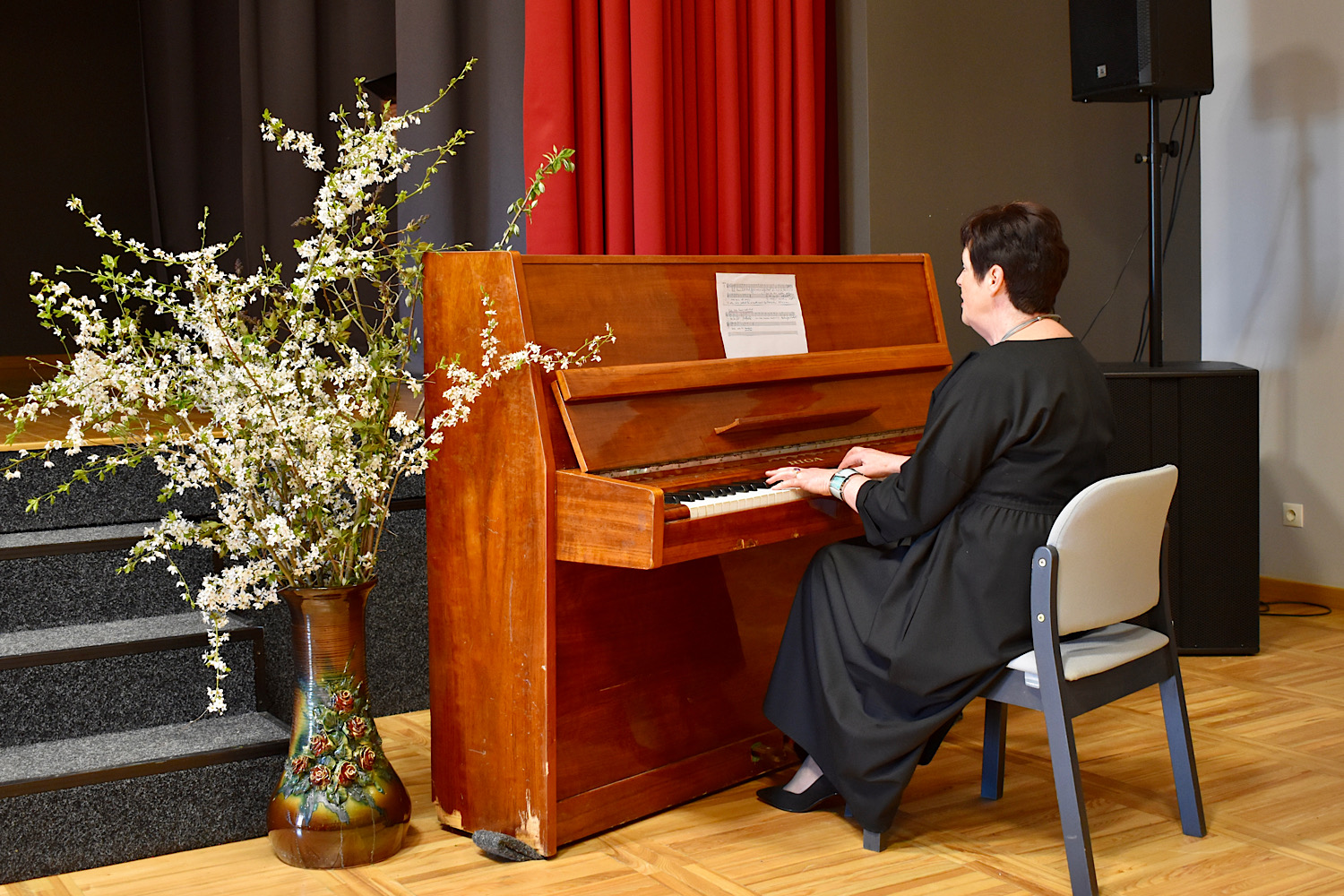 Skolotāja spēlē klavieres