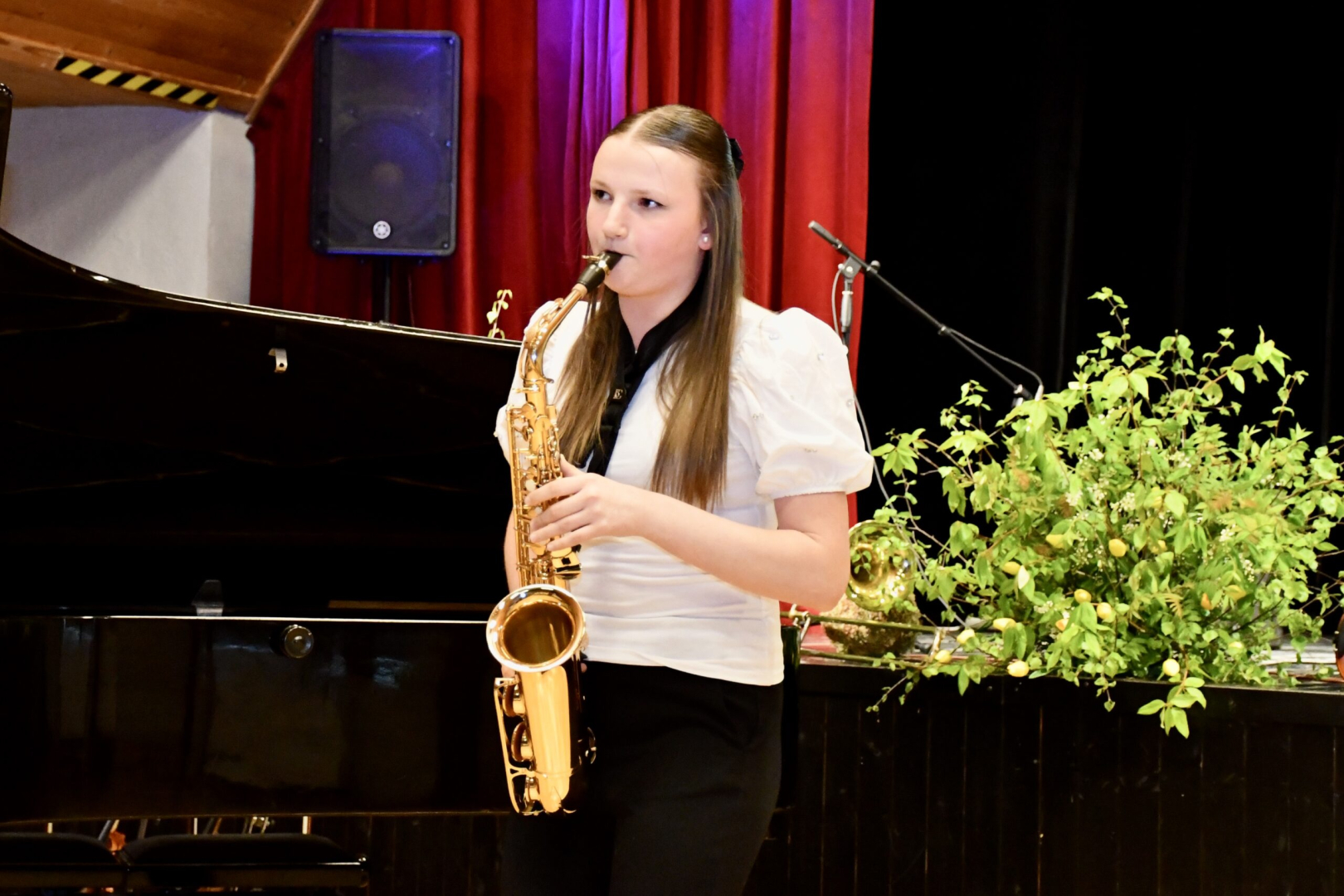 Meitene spēlē saksofonu