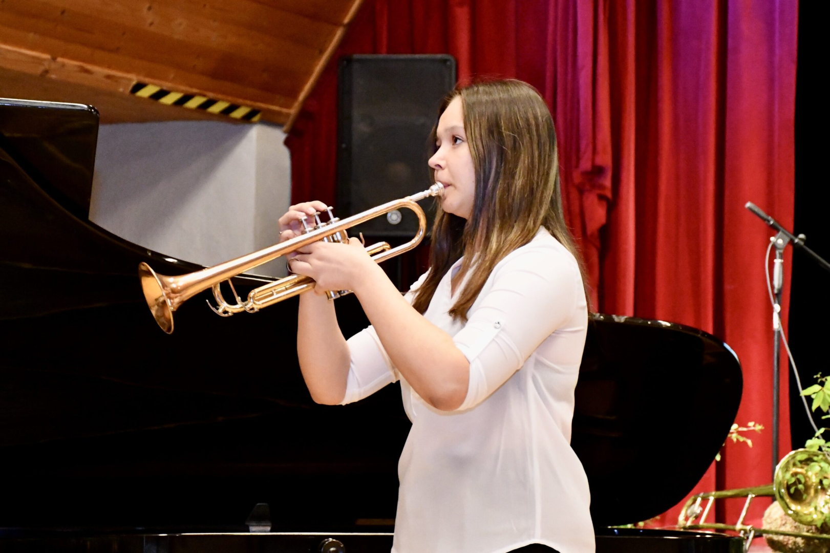 Meitene spēlē trompeti