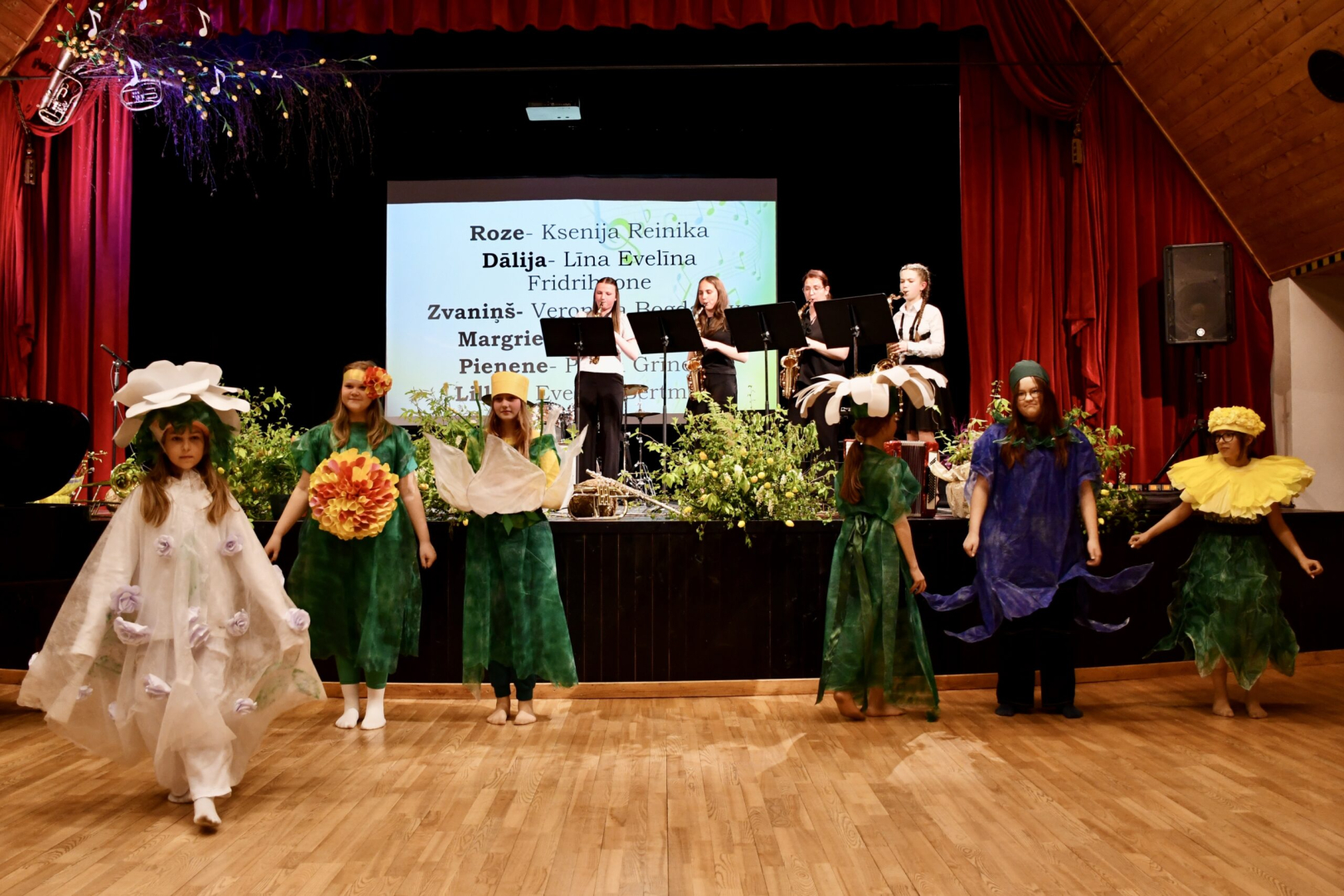 Meitenes ziedu kostīmos