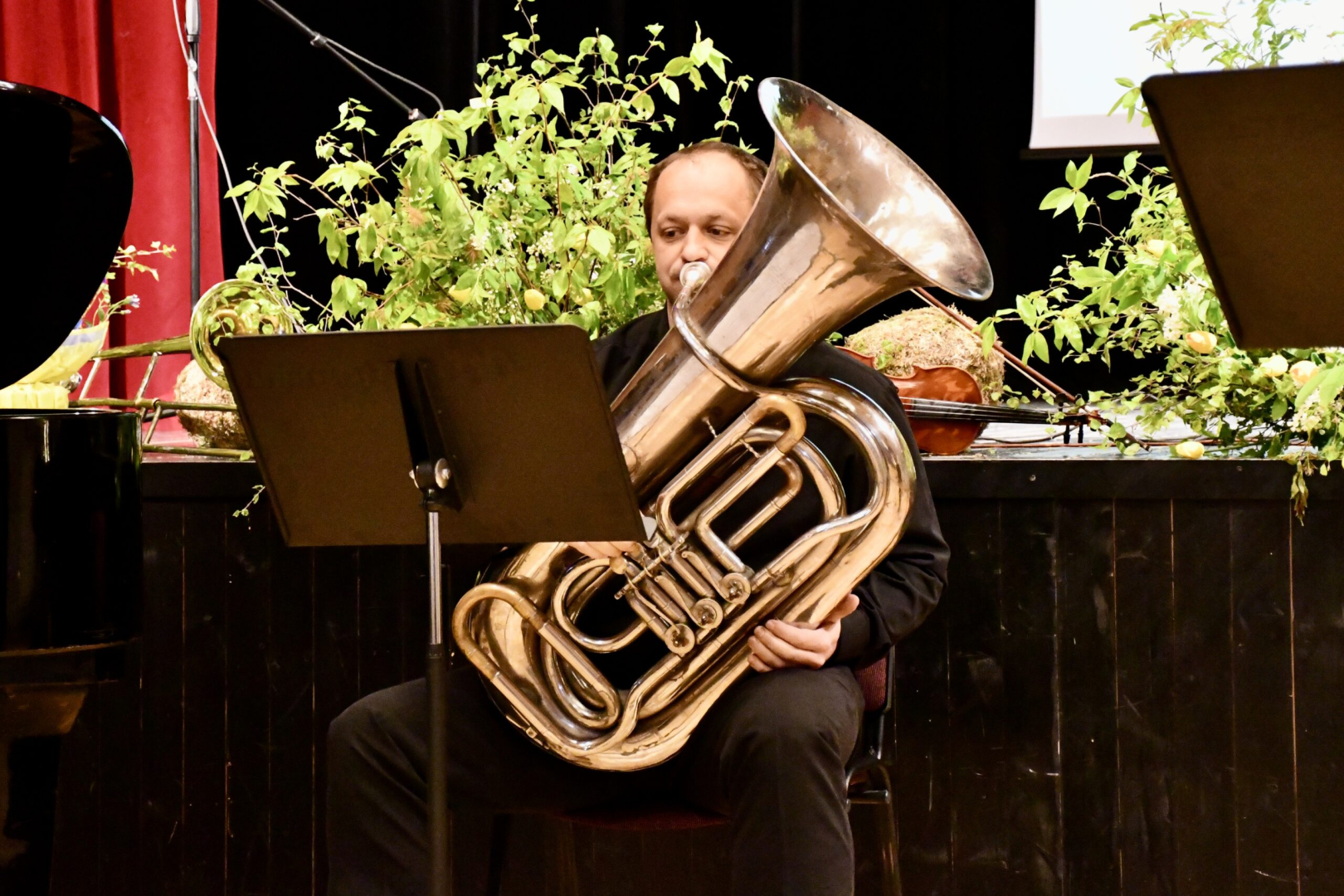 Vīrietis spēlē tubu