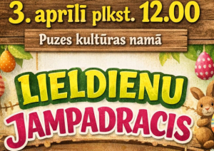 - 3. aprīlī plkst. 12.00 Puzes kultūras namā būs rotaļas, mīklu minēšana, oliņu ripināšana un pankūku cepšana.